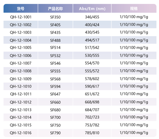 SF信号强度超越传统染料AF系列,亮度可达数倍以上